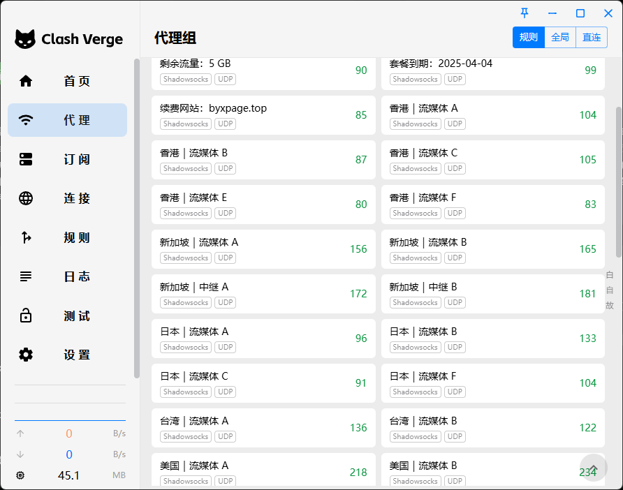| 基础配置 | ¥12.00/月 | 100GB/月 | 5 台 | 适合白领,支持全球流媒体 |