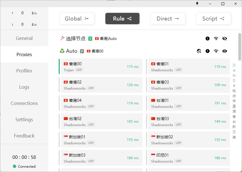- 翻墙协议:Shadowsocks、Trojan、Hy2(低倍率)