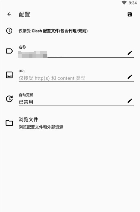 Clash 的使用比较简单,区别于传统 VPN 那种登录账号密码的形式,Clash for Android 使用是将订阅(或配置文件)导入到软件中使用。