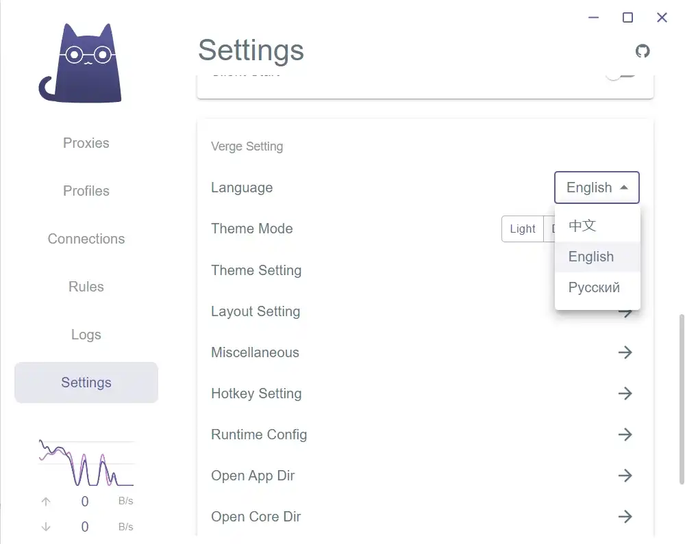 安装好后第一步就可以选择是否将软件切换成中文界面,这点比起Clash for Windows还是要好很多,不用再去下什么汉化补丁。