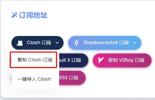 对于非Vless订阅,直接在机场后台复制Clash(R)订阅地址。