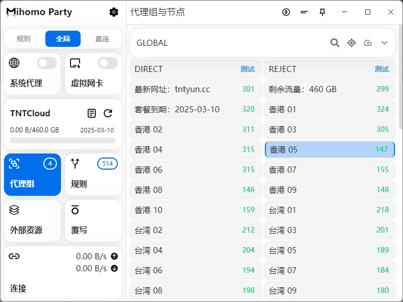 - TNT VIP4:¥160/月,每月 1100G 流量