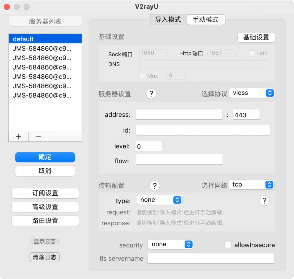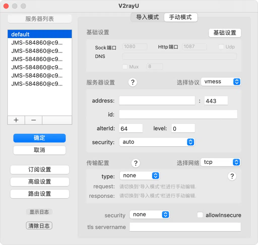 - VMESS服务器即v2Ray节点地址:vmess://