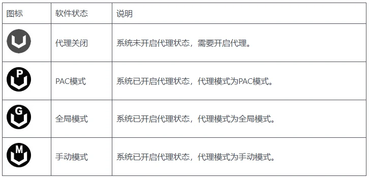 - 支持模式: 支持pac模式,手动代理模式,支持全局代理(有别于vpn,只是将代理信息更新到系统代理http,https,socks)